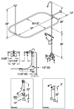 Polished Chrome Clawfoot Leg Tub Add-A-Shower Faucet Kit With Hand Shower