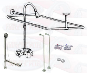 Chrome Clawfoot Tub Faucet Add-A-Shower Kit W/57" x 31" Curtain Rod, Drain & Supplies