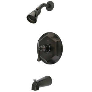 Honor the refinement of antiquated traditional European craftsmanship with this tub and shower faucet's dainty details. Complete with an easy-to-turn lever handle, an optimum bathing experience awaits. Enjoy the sturdy brass construction and premium brushed nickel finish for a fixture that will last for years to come. A pressure balanced valve is included for safety and protection against accidental burns.