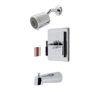 This tub and shower faucet tastefully interweaves top-notch ergonomic design and the sheen of contemporary simplicity with its black neoprene accents. Complete with an easy-to-turn lever handle, an optimum bathing experience awaits. Enjoy the sturdy brass construction and premium polished chrome finish for a fixture that will last for years to come. A pressure balanced valve is included for safety and protection against accidental burns.