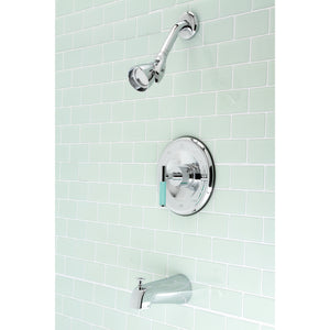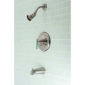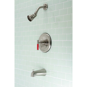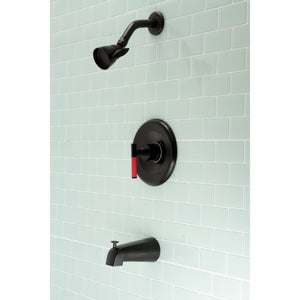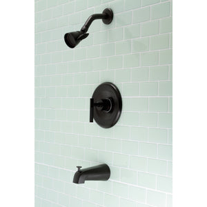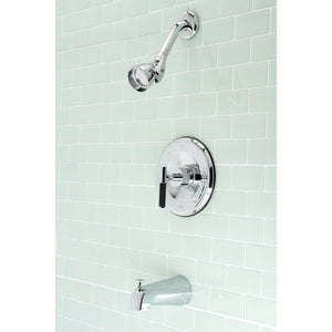 Complete with an easy-to-turn lever handle, an optimum bathing experience awaits. Enjoy the sturdy brass construction and premium matte black finish for a fixture that will last for years to come. This tub and shower faucet tastefully interweaves top-notch ergonomic design and the sheen of contemporary simplicity with its black neoprene accents. A pressure balanced valve is included for safety and protection against accidental burns.