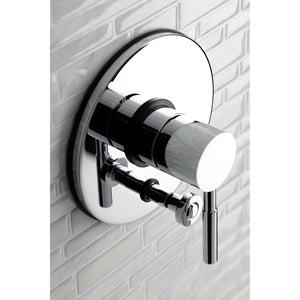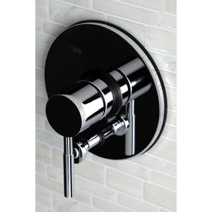 This tub and shower faucet's modern features create a bold and edgy design in your bathroom. Complete with an easy-to-turn lever handle, an optimum bathing experience awaits. Enjoy the sturdy brass construction and premium polished chrome finish for a fixture that will last for years to come. Internal valve hardware is included for your use.