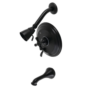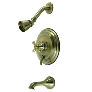 The traditional charm of this tub and shower faucet brings classical artistry to your home. Complete with an easy-to-turn cross handle, an optimum bathing experience awaits. Enjoy the sturdy brass construction and premium brushed nickel finish for a fixture that will last for years to come. A pressure balanced valve is included for safety and protection against accidental burns.