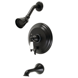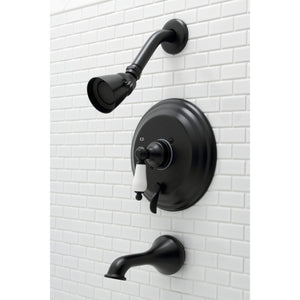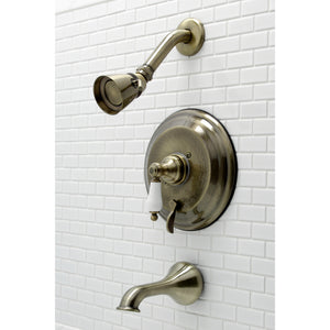 The traditional charm of this tub and shower faucet brings classical artistry to your home. Complete with an easy-to-turn lever handle, an optimum bathing experience awaits. Enjoy the sturdy brass construction and premium brushed nickel finish for a fixture that will last for years to come. A pressure balanced valve is included for safety and protection against accidental burns.