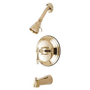 The sophisticated look and flawless design of this tub and shower faucet evokes glamorous appeal that's ideal for modern washrooms. Complete with an easy-to-turn lever handle, an optimum bathing experience awaits. Enjoy the sturdy brass construction and premium polished brass finish for a fixture that will last for years to come. A pressure balanced valve is included for safety and protection against accidental burns.