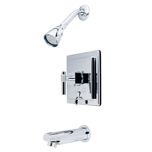 This tub and shower faucet's modern features create a bold and edgy design in your bathroom. Complete with an easy-to-turn lever handle, an optimum bathing experience awaits. Enjoy the sturdy brass construction and premium oil rubbed bronze finish for a fixture that will last for years to come. A pressure balanced valve is included for safety and protection against accidental burns.