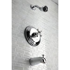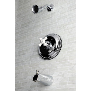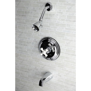 The exquisite design of this tub and shower faucet tastefully flatters the elegant architecture of traditional homes with its fine detailing. Complete with an easy-to-turn cross handle, an optimum bathing experience awaits. Enjoy the sturdy brass construction and premium polished chrome finish for a fixture that will last for years to come. Valves are sold separately.