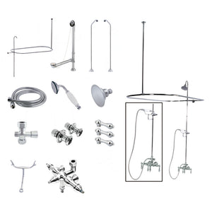 To wrap up your traditionally styled home decorum, incorporate the refinement of one of Kingston Brass' clawfoot tub faucet packages for an all-inclusive and reliable complement to your clawfoot tub. A top-to-bottom beautiful styling is achieved with these coordinated pieces from the shower enclosure down to the drain. All included products are made from sturdy materials and a premium finish for a reliable and long lasting set to last for years to come. Includes faucet, water supply lines, angle stop valves, drain, and shower enclosure.