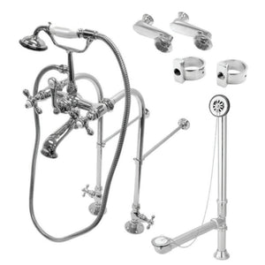 To wrap up your traditionally styled home decorum, incorporate the refinement of one of Kingston Brass' clawfoot tub faucet packages for an all-inclusive and reliable complement to your clawfoot tub. The beautiful vintage styling of this tub filler along with the telephone style handshower will lend to a Victorian style inspiration. All included products are made from sturdy materials and a premium finish for a reliable and long lasting set to last for years to come. Includes faucet, water supply lines, angle stop valves, and drain.