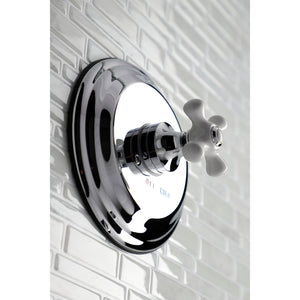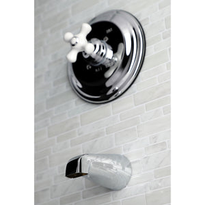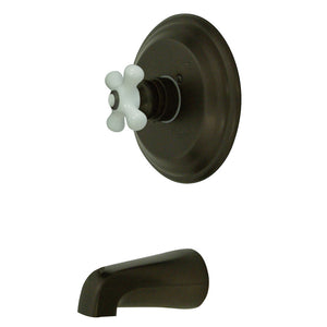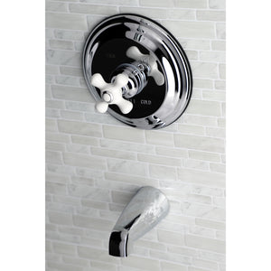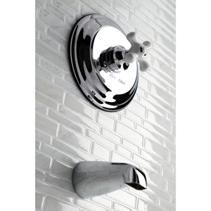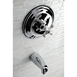 Return to the antique designs of the early 20th Century with this tub and shower faucet, offering detailings of refined splendor and ornate design to your home. Complete with an easy-to-turn cross handle, an optimum bathing experience awaits. Enjoy the sturdy brass construction and premium oil rubbed bronze finish for a fixture that will last for years to come. A pressure balanced valve is included for safety and protection against accidental burns.