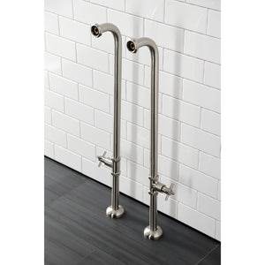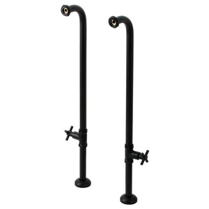 Dive into modern design with the sleek and cylindrical styling of this freestanding supplies from the Concord Collection. This freestanding tub supply line set features a floor-mount installation and 27-3/4 inch height. Constructed of solid brass material. Excellence of endurance and reliability is emboldened by a Corrosion-resistant finish, embellish your home ensemble with this freestanding water supplies. The water supplies comes in pairs and includes valve stops with cross handles. Available in a variety of finishes.