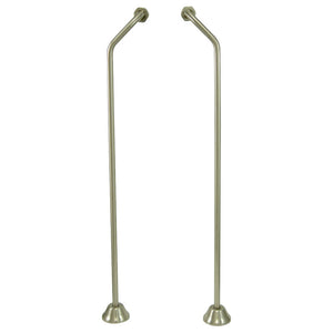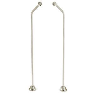 Complete your bath design with this offset clawfoot tub faucet supplies from Kingston Brass. The offset water supplies are constructed from high quality brass for strong durability and reliability for years to come. Its premier finish resists tarnishing and corrosion. The supplies are sold in pairs with overall dimensions of 25-inch x 2-3/4 inch and the 2-3/8 inch diameter flanges.