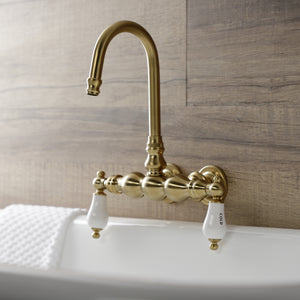 Wall mount clawfoot tub faucets are the perfect fixture to add decorative flair within your bathroom because of their unique architectural elements. with vintage opulence, this will complete your refined bathroom decorum with the help of its premium brushed brass finish. The solid brass construction also makes for a heavy, quality made product.
