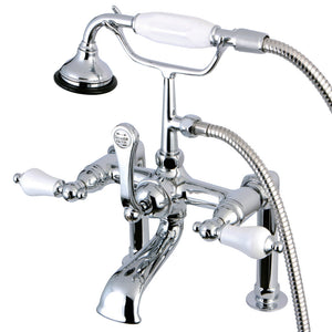 Vintage opulence finds itself within this deck-mount clawfoot tub faucet. As the perfect complement to your tub, this will complete your refined bathroom decorum with the help of its premium, glistening polished chrome finish and telephone style hand shower. The solid brass construction also makes for a heavy, quality made product.