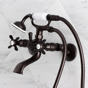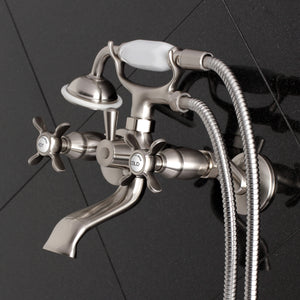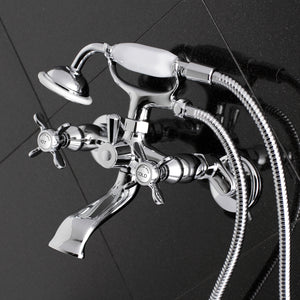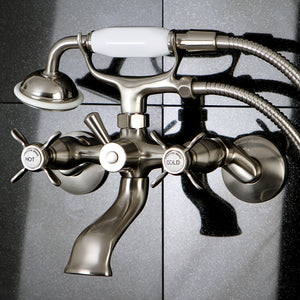 Wall mount clawfoot tub faucets are the perfect fixture to add decorative flair within your bathroom because of their unique architectural elements. With vintage opulence, this will complete your refined bathroom decorum with the help of its premium polished nickel finish and traditionally styled handheld shower. The solid brass construction also makes for a heavy, quality made product.