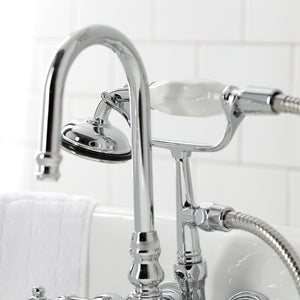 Wall mount clawfoot tub faucets are the perfect fixture to add decorative flair within your bathroom because of their unique architectural elements. With vintage opulence, this will complete your refined bathroom decorum with the help of its premium polished chrome finish and traditionally styled handheld shower. The solid brass construction also makes for a heavy, quality made product.