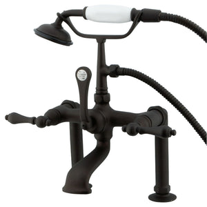 Vintage opulence finds itself within this deck-mount clawfoot tub faucet. As the perfect complement to your tub, this will complete your refined bathroom decorum with the help of its premium, glistening oil rubbed bronze finish and telephone style hand shower. The solid brass construction also makes for a heavy, quality made product.