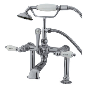 Vintage opulence finds itself within this deck-mount clawfoot tub faucet. As the perfect complement to your tub, this will complete your refined bathroom decorum with the help of its premium, glistening polished chrome finish and telephone style hand shower. The solid brass construction also makes for a heavy, quality made product.