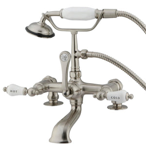 Vintage opulence finds itself within this deck-mount clawfoot tub faucet. As the perfect complement to your tub, this will complete your refined bathroom decorum with the help of its premium, glistening oil rubbed bronze finish and telephone style hand shower. The solid brass construction also makes for a heavy, quality made product.