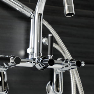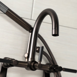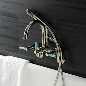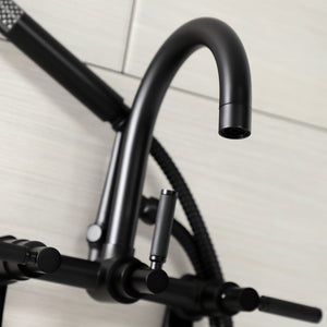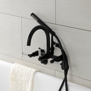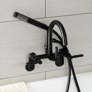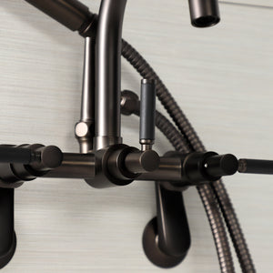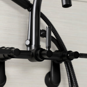 Wall mount clawfoot tub faucets are the perfect fixture to add decorative flair within your bathroom because of their unique architectural elements. With vintage opulence, this will complete your refined bathroom decorum with the help of its premium matte black finish and traditionally styled handheld shower. The solid brass construction also makes for a heavy, quality made product.