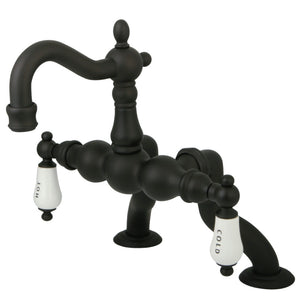 Vintage opulence finds itself within this deck-mount clawfoot tub faucet. As the perfect complement to your tub, this will complete your refined bathroom decorum with the help of its premium, glistening oil rubbed bronze finish and telephone style hand shower. The solid brass construction also makes for a heavy, quality made product.