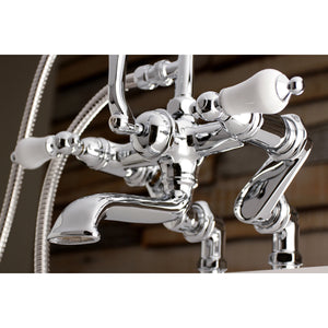 Vintage opulence finds itself within this deck-mount clawfoot tub faucet. As the perfect complement to your tub, this will complete your refined bathroom decorum with the help of its premium, glistening polished chrome finish and telephone style hand shower. The solid brass construction also makes for a heavy, quality made product.