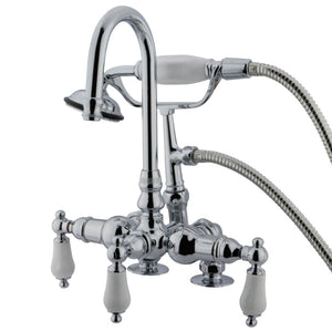 Vintage opulence finds itself within this deck-mount clawfoot tub faucet. As the perfect complement to your tub, this will complete your refined bathroom decorum with the help of its premium, glistening polished brass finish and telephone style hand shower. The solid brass construction also makes for a heavy, quality made product.