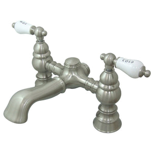 Vintage opulence finds itself within this deck-mount clawfoot tub faucet. As the perfect complement to your tub, this will complete your refined bathroom decorum with the help of its premium, glistening brushed nickel finish and telephone style hand shower. The solid brass construction also makes for a heavy, quality made product.