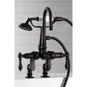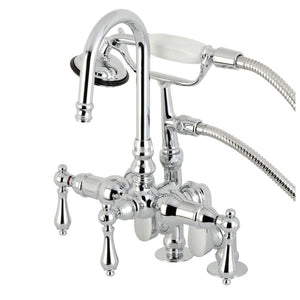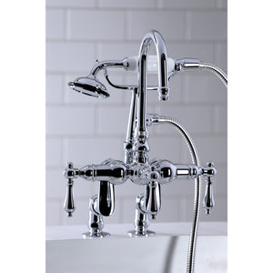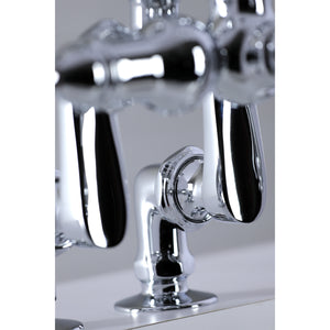 Vintage opulence finds itself within this deck-mount clawfoot tub faucet. As the perfect complement to your tub, this will complete your refined bathroom decorum with the help of its premium, glistening polished chrome finish and telephone style hand shower. The solid brass construction also makes for a heavy, quality made product.