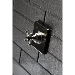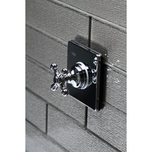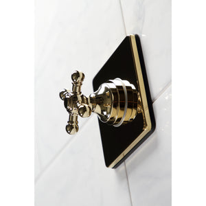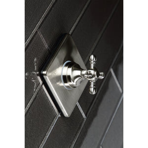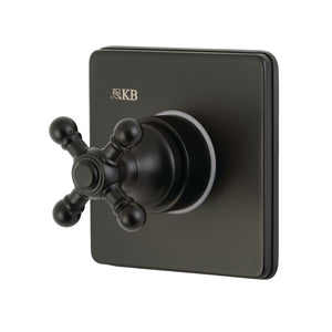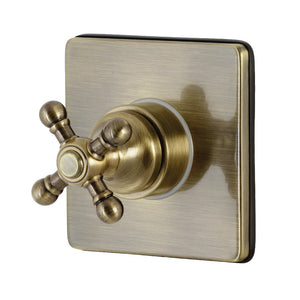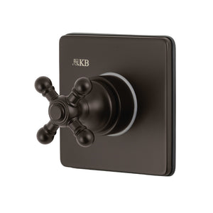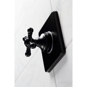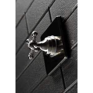 This cross handle, diverter valve and face plate help direct water to divert into three different ways, usually for the shower head, hand shower or tub spout. Each component is crafted with solid brass for durable long-term use. The diverter valve features one inlet to three outlets, to move water to its desired destination. Easy to install, the diverter is usable with hot and cold water and complies with other traditional designs.