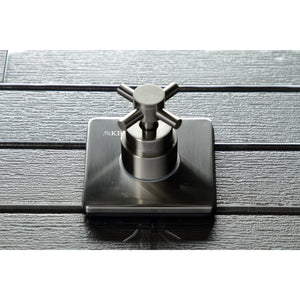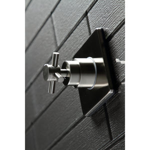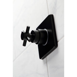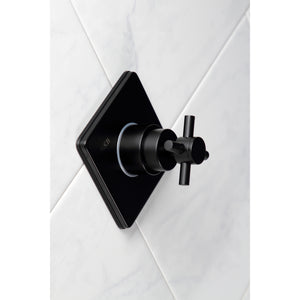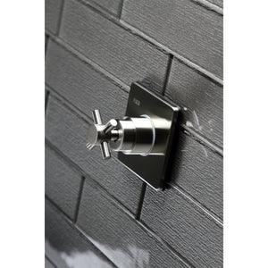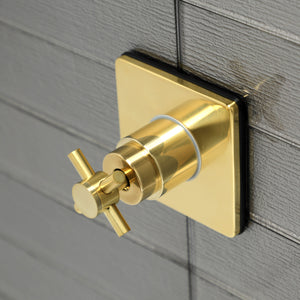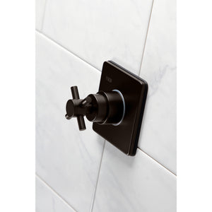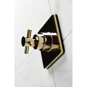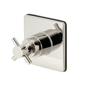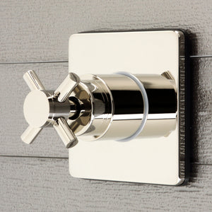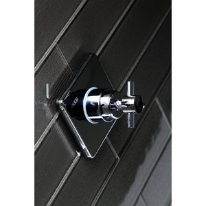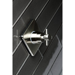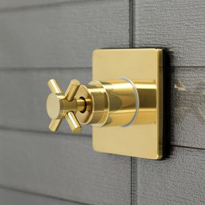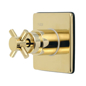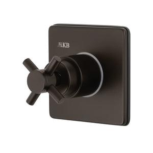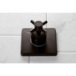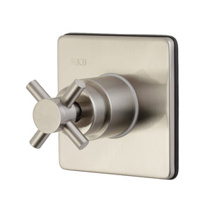 This cross handle, diverter valve and face plate help direct water to divert into three different ways, usually for the shower head, hand shower or tub spout. Each component is crafted with solid brass for durable long-term use. The diverter valve features one inlet to three outlets, to move water to its desired destination. Easy to install, the diverter is usable with hot and cold water and complies with other modern designs.