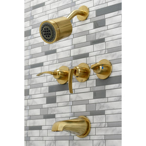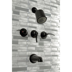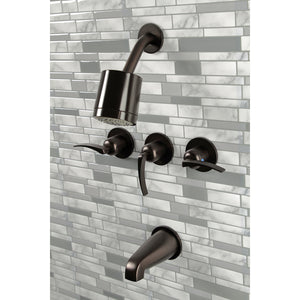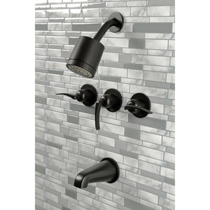 The innovative, sleek design of this tub and shower faucet will enhance contemporary decor Complete with easy-to-turn lever handles, an optimum bathing experience awaits. Enjoy the sturdy brass construction and premium matte black finish for a fixture that will last for years to come. Internal valve hardware is included for your use.
