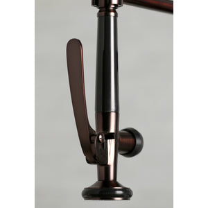 Transcend your home into a futuristic utopia with this faucet's brilliant craftsmanship and modern, curved spout with ergonomic levers. Designed for optimum versatility and functionality, the multiple spray settings and extendable spout of this pre-rinse faucet make for an enjoyable cleaning experience. Additionally, the rotating swivel spout leaves no area of the sink untouched as the industrial look of the exposed spring provides residential function. The oil rubbed bronze finish will also provide a long lasting and warm touch to your kitchen ensemble. Matching accessories are available for use.