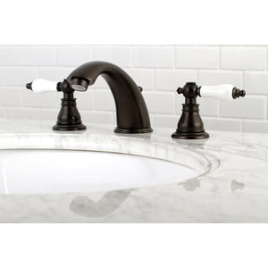 Orchestrated with the flow of the ever-present porcelain lever handles, this faucet prevails a whimsical tune of design to accompany its traditional detailing. Ideal for more spacious bathrooms, widespread faucets are more spread apart and feature a 3-hole installation. The American Patriot 8-inch widespread bathroom faucet and its featured sturdy brass construction and premium oil rubbed bronze finish are guaranteed to glamorize your home's traditional ensemble for years to come. Add a hint of vintage styling to your household with this faucet. A matching finish drain is also included.