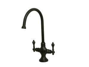 Return to the antique designs of the early 20th Century with this faucet, offering detailings of refined splendor and ornate design to your home. For a streamlined yet glamorous look, two-handle single-hole kitchen faucets are a practical and fashionable design. Additionally, the oil rubbed bronze finish is guaranteed to embellish your home's traditional ensemble for years to come as it adds a warmer tone. Allow the brass construction to provide a sturdy and reliant fixture. Matching accessories are available for use.