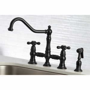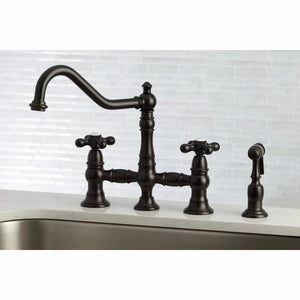 Kingston Brass KS3276AXBS Restoration 8" Bridge Kitchen Faucet with Sprayer