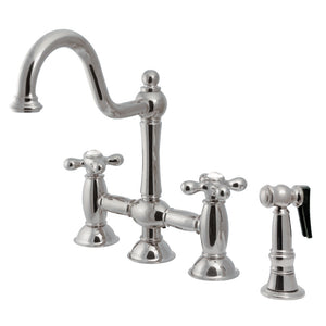 Kingston Brass KS3791AXBS Restoration Bridge Kitchen Faucet with Brass Sprayer