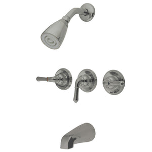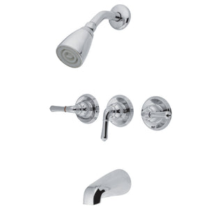 The timeless appeal of this tub and shower faucet's sleek and simple design transforms any bathroom into a destination location. Complete with easy-to-turn lever handles, an optimum bathing experience awaits. Enjoy the sturdy brass construction and premium polished brass finish for a fixture that will last for years to come. Internal valve hardware is included for your use.