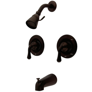 The timeless appeal of this tub and shower faucet's sleek and simple design transforms any bathroom into a destination location. Complete with easy-to-turn lever handles, an optimum bathing experience awaits. Enjoy the sturdy brass construction and premium oil rubbed bronze finish for a fixture that will last for years to come. A pressure balanced valve is included for safety and protection against accidental burns.