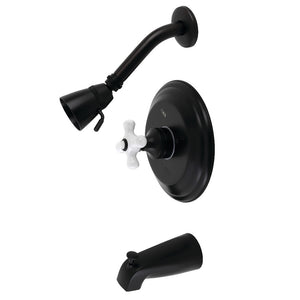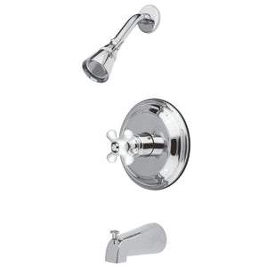 The traditional charm of this tub and shower faucet brings classical artistry to your home. Complete with an easy-to-turn cross handle, an optimum bathing experience awaits. Enjoy the sturdy brass construction and premium brushed nickel finish for a fixture that will last for years to come. A pressure balanced valve is included for safety and protection against accidental burns.