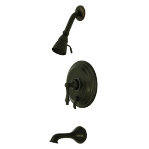 The traditional charm of this tub and shower faucet brings classical artistry to your home. Complete with an easy-to-turn lever handle, an optimum bathing experience awaits. Enjoy the sturdy brass construction and premium polished brass finish for a fixture that will last for years to come. A pressure balanced valve is included for safety and protection against accidental burns.