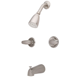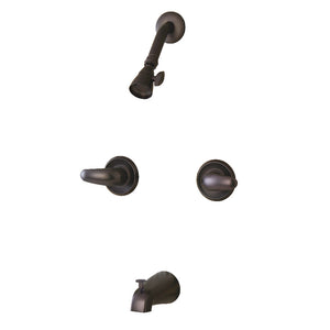 A twist on classic design is taken with this tub and shower faucet's curved features. Complete with easy-to-turn lever handles, an optimum bathing experience awaits. Enjoy the sturdy brass construction and premium oil rubbed bronze finish for a fixture that will last for years to come. Internal valve hardware is included for your use.