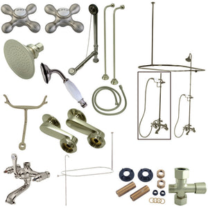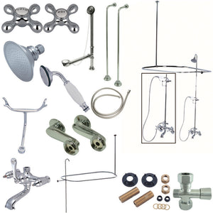 To wrap up your traditionally styled home decorum, incorporate the refinement of one of Kingston Brass' clawfoot tub faucet packages for an all-inclusive and reliable complement to your clawfoot tub. A top-to-bottom beautiful styling is achieved with these coordinated pieces from the shower enclosure down to the drain. All included products are made from sturdy materials and a premium finish for a reliable and long lasting set to last for years to come. Includes faucet, water supply lines, angle stop valves, drain, and shower enclosure.