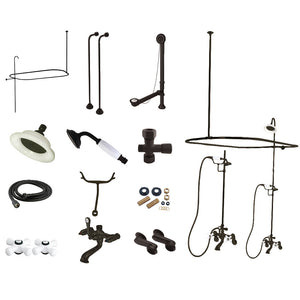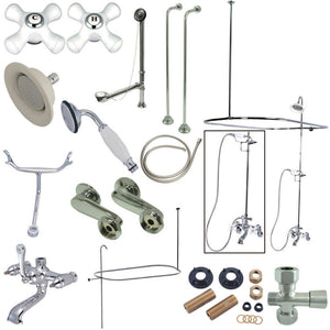 To wrap up your traditionally styled home decorum, incorporate the refinement of one of Kingston Brass' clawfoot tub faucet packages for an all-inclusive and reliable complement to your clawfoot tub. A top-to-bottom beautiful styling is achieved with these coordinated pieces from the shower enclosure down to the drain. All included products are made from sturdy materials and a premium finish for a reliable and long lasting set to last for years to come. Includes faucet, water supply lines, angle stop valves, drain, and shower enclosure.