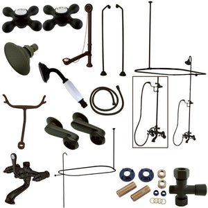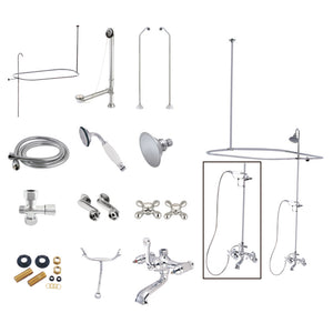 To wrap up your traditionally styled home decorum, incorporate the refinement of one of Kingston Brass' clawfoot tub faucet packages for an all-inclusive and reliable complement to your clawfoot tub. A top-to-bottom beautiful styling is achieved with these coordinated pieces from the shower enclosure down to the drain. All included products are made from sturdy materials and a premium finish for a reliable and long lasting set to last for years to come. Includes faucet, water supply lines, angle stop valves, drain, and shower enclosure.