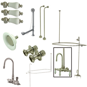 To wrap up your traditionally styled home decorum, incorporate the refinement of one of Kingston Brass' clawfoot tub faucet packages for an all-inclusive and reliable complement to your clawfoot tub. A top-to-bottom beautiful styling is achieved with these coordinated pieces from the shower enclosure down to the drain. All included products are made from sturdy materials and a premium finish for a reliable and long lasting set to last for years to come. Includes faucet, water supply lines, angle stop valves, drain, and shower enclosure.