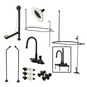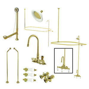 To wrap up your traditionally styled home decorum, incorporate the refinement of one of Kingston Brass' clawfoot tub faucet packages for an all-inclusive and reliable complement to your clawfoot tub. A top-to-bottom beautiful styling is achieved with these coordinated pieces from the shower enclosure down to the drain. All included products are made from sturdy materials and a premium finish for a reliable and long lasting set to last for years to come. Includes faucet, water supply lines, angle stop valves, drain, and shower enclosure.