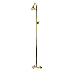 Add the polished refinery of this Vintage wall mount shower combo to your bathroom. The classic styling adds a luxurious element as the shower riser ensures a high showerhead clearance, perfect for everyone in the home. Included in this combo are the showerhead, shower riser, and faucet body. This package is for shower use only and does not include a tub filler. All components are constructed from solid brass for durability and reliability.