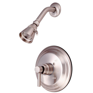 This shower faucet brings state-of-the-art glamour to the bathroom. The sleek body work of the bell-shaped showerhead features an adjustable spray lever to provide more than one spray mode to enjoy bathing. Additionally, the cylindrical lever handle attached to the circular wall mount beneath the showerhead dives into modern design. Enjoy the sturdy brass construction and premium brushed nickel finish for a fixture that will last for years to come. A pressure balanced valve is also included for safety and protection against accidental burns.