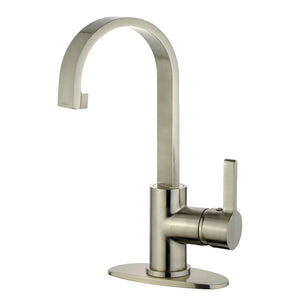 Transcend your home into a futuristic utopia with this faucet's brilliant craftsmanship and modern, curved spout with ergonomic levers. Single-hole bathroom faucets provide a more streamlined look. Also, they will allow your bathroom to appear more spacious with the limited counter space they require. The Continental single-handle bathroom faucet with push pop-up and its featured sturdy brass construction and premium brushed nickel finish are guaranteed to glamorize your home's modern ensemble for years to come. Build the ultimate cutting-edge home with the assistance of this faucet. A matching finish drain is also included.